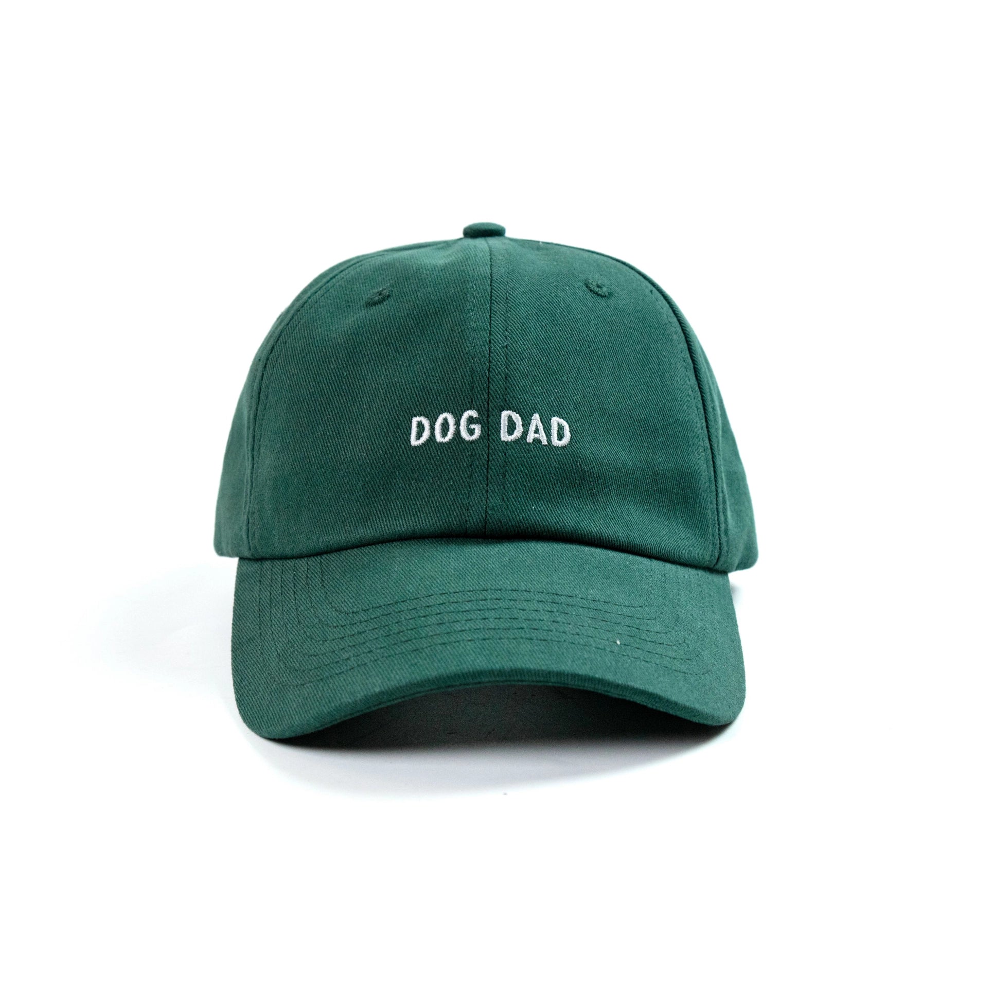 Cette casquette 100 % coton verte est ornée d'une broderie blanche « Dog Dad » et d'une sangle réglable.
