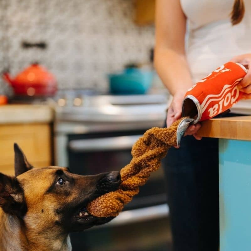 La peluche Snack Attack "Good Boy Cola" est un jouet de fouille en forme de canette de Cola. Le jouet est composé d'une canette en papier froissé et du "soda" conçu de papier froissé et d'un couineur résistant.