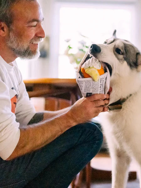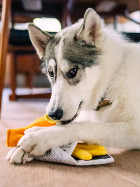 Le jouet Fish & Chips "Chippy Chews" de Pet Play et son design alléchant fera craquer à coup sûr votre chien ! 🐟 Ce jeu d'occupation mentale permettra à votre chien de se dépenser mentalement et de lutter contre l'ennui. Les différentes textures et sons (papier froissé et couineurs) et les 3 éléments dissociables du jouet (le papier journal, le poisson et les frites) de ce jouet le stimuleront pendant des heures.