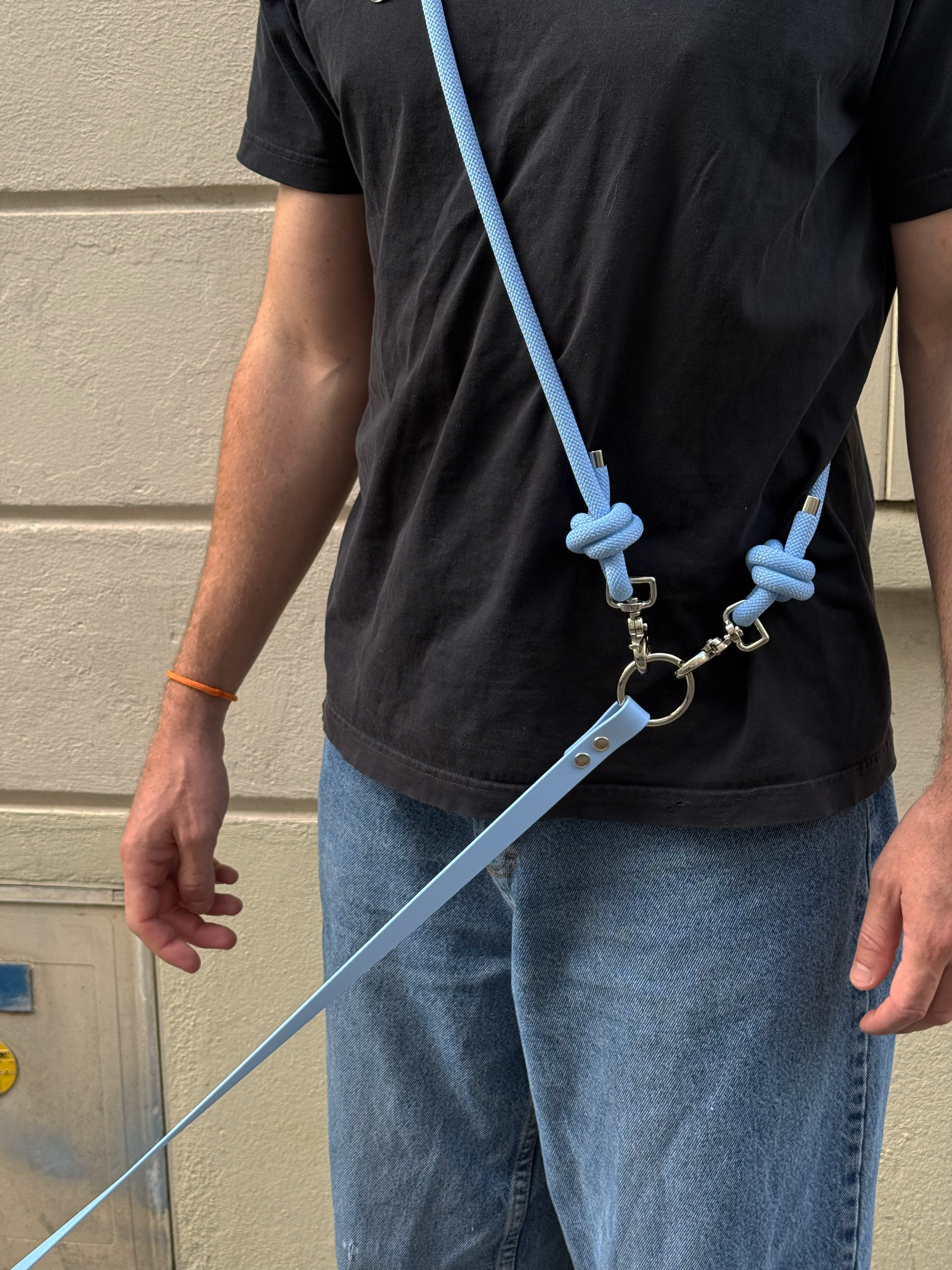 Cette laisse Cotton Candy 🧊 3 positions est issue de la collaboration Barkers and Brothers x Chien-Chien, disponible en exclusivité chez Barkers ! Grâce à ses 3 positions, elle se porte en mains-libres (autour du corps), en longe (2m45) ou en version courte de ville.Â