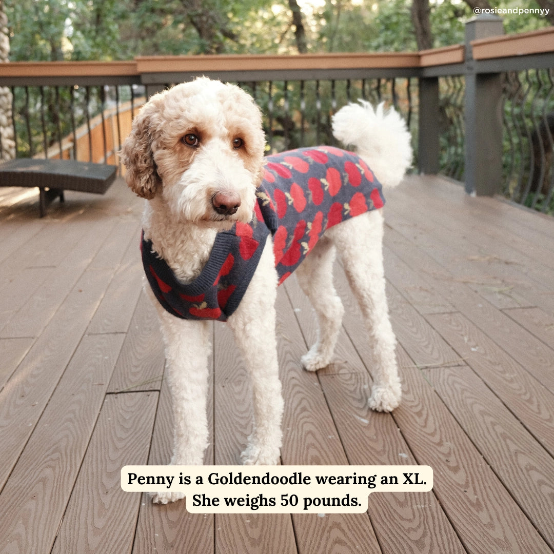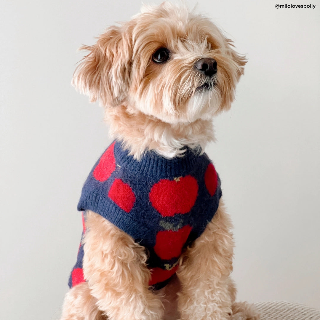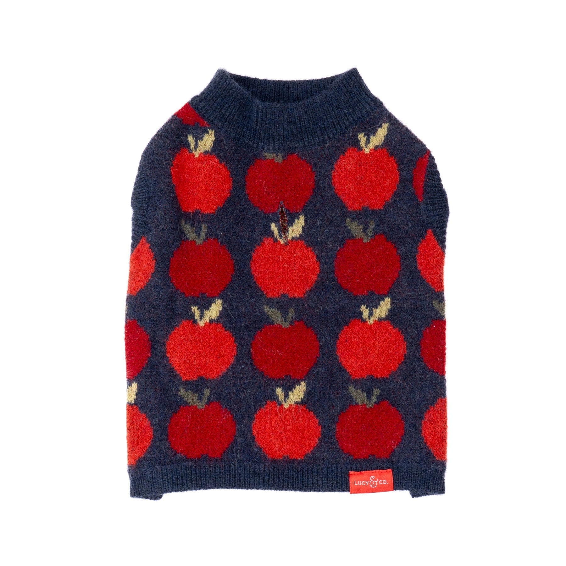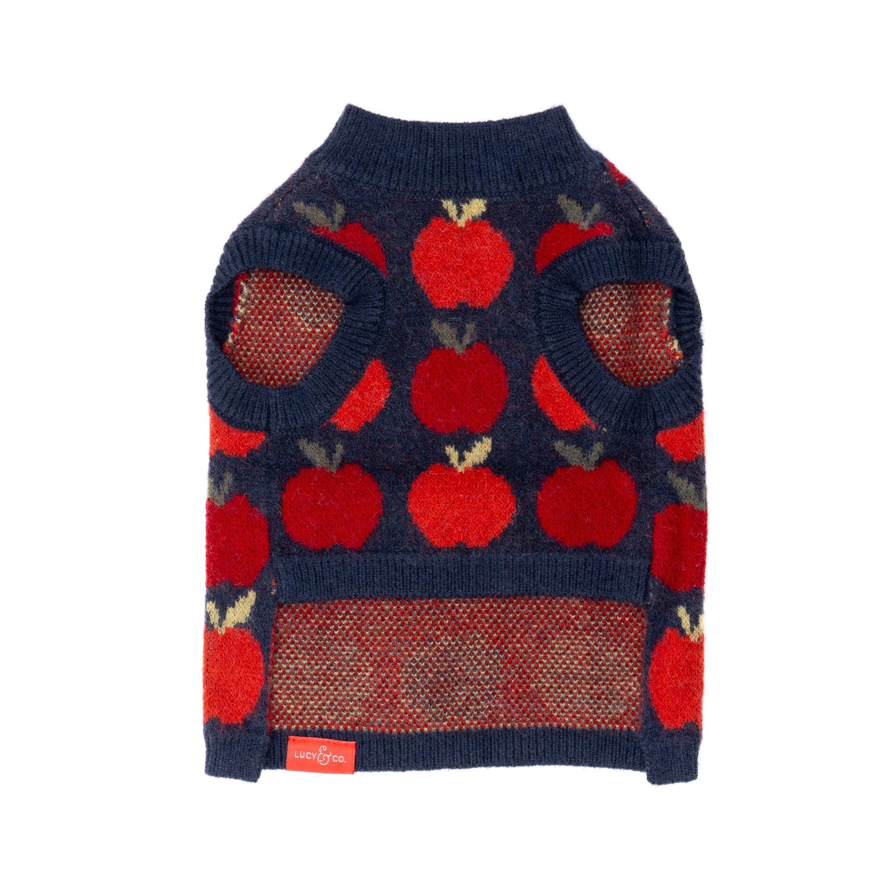 Super doux et extensible, l'encolure de ce joli pull à motif pommes est pensée pour que les chiens ne puissent pas l'enlever en se tortillant. Il comprend aussi une petite entaille sur le dos pour faire passer la laisse. 🍎